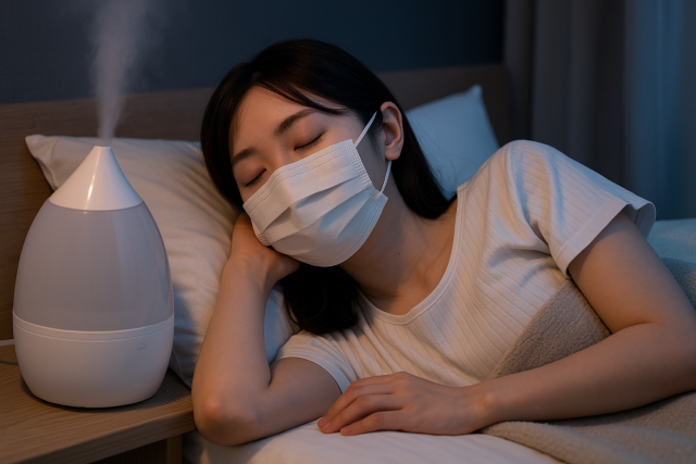 寝ている間に口呼吸になってしまうと、喉が一気に乾きやすくなります。そんなときは、就寝用マスクや保湿シートなどのアイテムが役立ちます。最近は肌に優しく、息苦しさも少ないタイプが増えているので、試しやすいはずです。