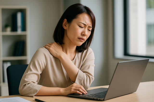 さらに、その痛みが出やすい場面もさまざまです。長時間デスクワークをしているとき、洗濯物を干そうと腕を上げたとき、あるいは寝返りを打った瞬間など、姿勢や動作のきっかけで強くなるケースが多く見られます。