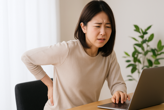 また、長時間同じ姿勢=筋肉がこわばる/疲れて回復しづらい、という場面でも筋・筋膜由来の痛みが出やすいです。