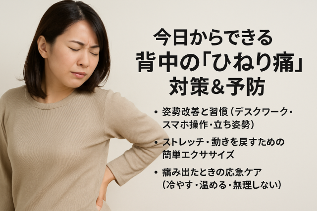 姿勢改善と習慣で背中の「ひねり痛」を防ぐ