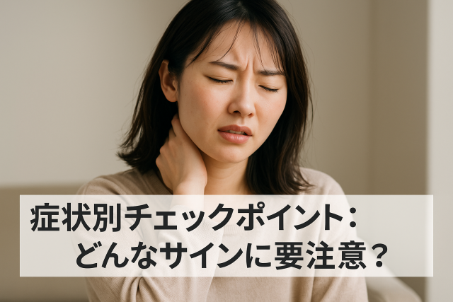 最後に見落とせないのが「併発症状」です。発熱がある、体重が急に減った、しびれが出てきた、血尿が見られた――これらは単なる疲れや使いすぎでは片付けづらいサインです。