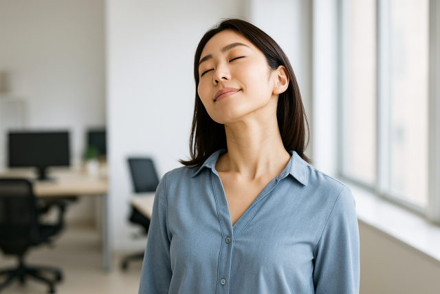 特にデスクワークが多い方は、「ふと気づいたら30分以上座りっぱなし」になりがちですが、そこを「60分で1回リセット」のサインにしておくと、体も気持ちも少しずつ軽くなっていくでしょう。首を左右にゆっくり動かしたり、肩甲骨を軽く寄せて胸を開いたりするだけでも充分です。