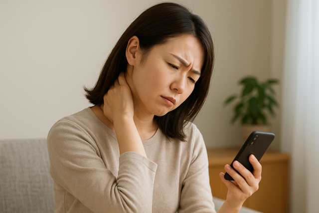 軽い痛みでも、姿勢やスマホ操作の時間が長い人ほど、神経や筋肉に負担がかかりやすく、知らないうちに悪化してしまうケースがあります。「寝違えたかな」と思って放っておくと、しびれや力の入りづらさにつながることもあるので注意が必要です。