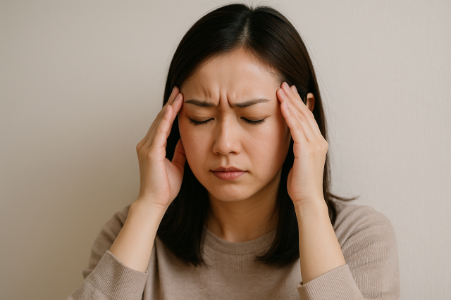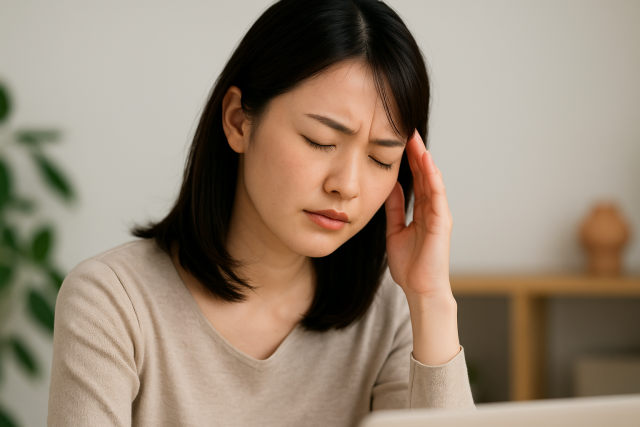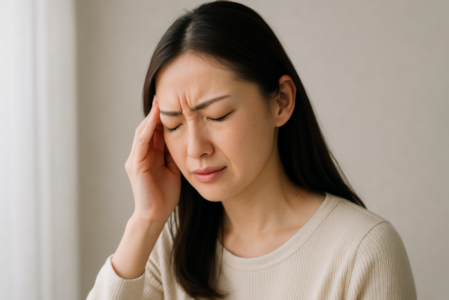 「片側がズキズキする感じが続くんですよね」と話される方は、片頭痛の特徴に近いことがあります。光や音の刺激で悪化しやすいこともあり、仕事中に突然つらくなる方も少なくありません。