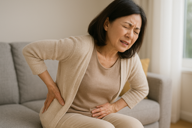 一方で、慢性的な腰の重さやだるさは、筋肉がこわばり、血の巡りが下がることで起きやすく、長時間同じ姿勢や疲労の蓄積で強まりやすい傾向があります。