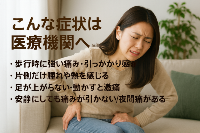 こうした声は意外と多く、股関節まわりの筋肉の硬さだけでなく、関節内部で起きている変化が関係している可能性もあります。とくに、痛みが急に強くなったり、階段の上り下りで足がつけられないほどの状態なら、専門家の判断を受けた方が安心です。