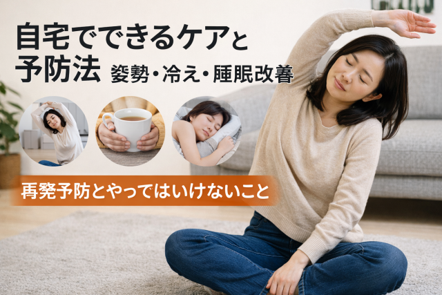 また、ストレスや睡眠不足が続くと、痛みを強く感じやすくなります。完璧を目指すより、「今日は少し早く休もう」くらいの意識が結果的に改善につながります。
