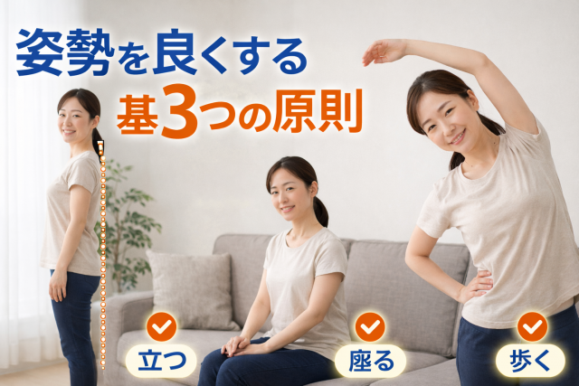 姿勢は筋肉で“支える感覚”が大切なので、短時間でも毎日触れておくことがポイントになります。