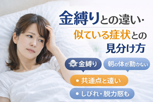 「それって金縛りじゃないの?」と思う方もいるでしょう。確かに仕組みは似ており、睡眠中の夢を見る状態と覚醒が重なって起こる点は共通しています。ただ、朝に起こるケースでは恐怖感や幻覚が少なく、「動けないこと自体に戸惑う」という訴えが多いのが特徴です。同じようで少し違う、この違いを知っておくと安心につながります。