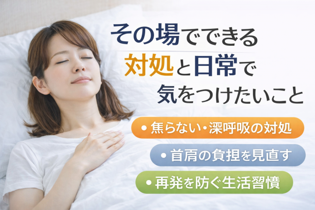 再発を減らすためには、寝る前の環境づくりも大切です。枕の高さが合っていない、首や肩に負担がかかる姿勢で寝ていると、朝の違和感につながることもあります。「朝起きたとき、首が重いな」と感じる方は、一度見直してみる価値があります。