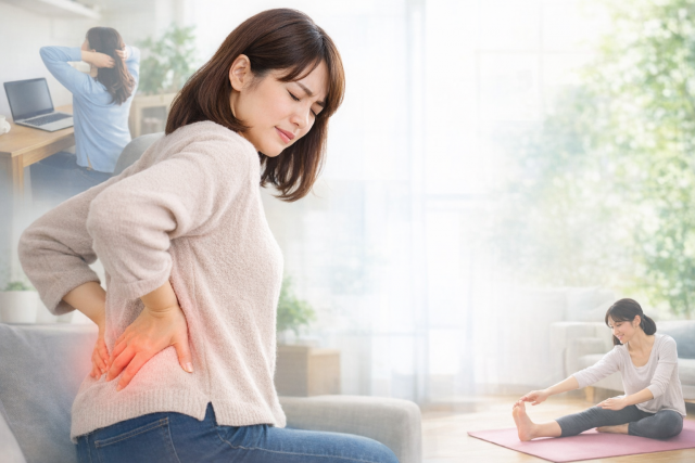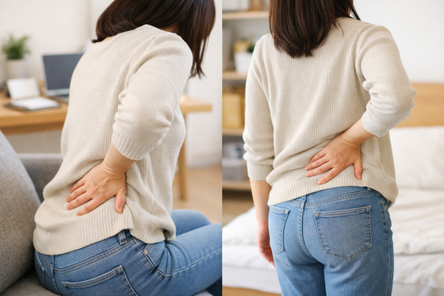 女性の場合、生理周期と重なる痛みや下腹部の違和感があれば、婦人科領域の影響も考えられます。「腰だけ」と決めつけず、体全体のサインを見ることが大切です。