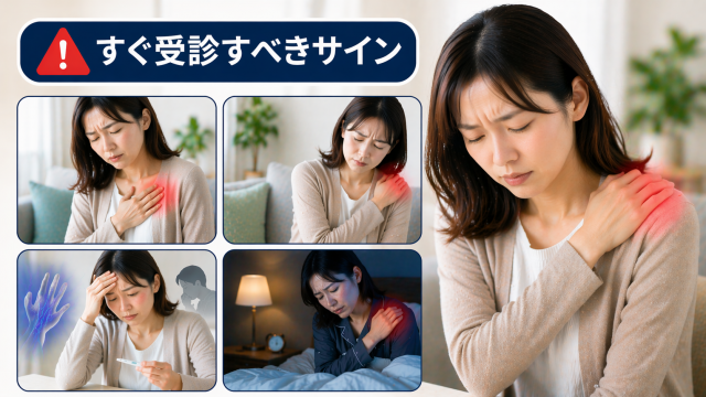 たとえば、胸の圧迫感や息苦しさを伴う場合は、肩そのものの問題とは言い切れません。