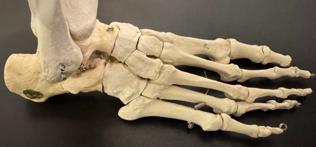 これらが起こると足関節が崩れ、アーチを潰す形になります。その結果、指先への負荷が大きくなり、神経圧迫を引き起こす一因となります。