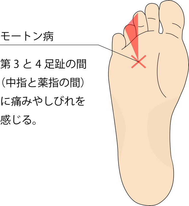モートン病は、足指の付け根に痛みが出る疾患です。